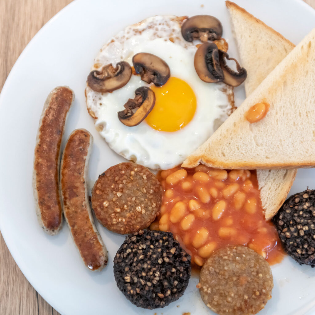 Die Familie Johannsen ist zwar auf Sylt verwurzelt, es gibt allerdings auch familiäre Verbindungen nach Irland. Vor diesem Hintergrund bieten wir heute am Abreisetag unseren jetzt Sylt-erfahrenen Teilnehmern ein sehr besonderes Frühstück – so, wie es die Iren lieben: gehaltvoll und köstlich. Mit geröstetem Brot, Speck, Baked Beans, Würstchen, Spiegelei, Pilzen, Tomaten und vor allem White und Black Pudding. Guten Appetit!