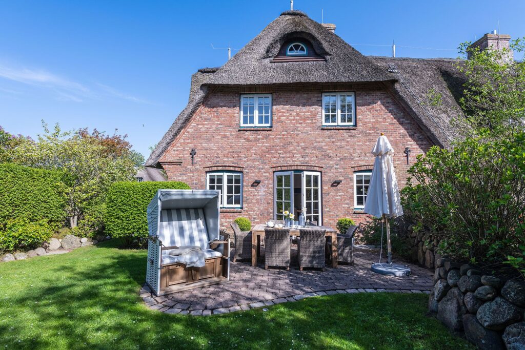 Das Ferien Domizil unter Reet an der Bahnhofstrasse 22 wurde im Frühjahr 2019 umfassend und hochwertig renoviert. Es gilt als Geheimtipp unter den Wellness-Fans. Bis zu fünf Personen finden hier auf vier Ebenen und 125 m² ausreichend Platz. Der 300 m² große Garten und die nach Westen ausgerichtete Terrasse bieten zusätzlichen Raum zur Entspannung. Der moderne Hau...Weiterlesensteil unter Reet erwartet seine Gäste mit vielen schönen und einladenden Plätzen. Im Wohnzimmer sorgt ein Kachelofen für wohlige Wärme und zaubert einen Lieblingsplatz auf dem gemütlichen Sofa. Der große Esstisch verbindet die offene und umfangreich ausgestattete Küche mit dem Wohnbereich. Auf drei Ebenen befinden sich moderne Bäder. Das Herzstück der Wohnung ist im Souterrain zuhause – ein privater, großzügig über zwei Räume sich erstreckender Wellnessbereich. Es ist der ideale Rückzugsort nach einem wind- und wettererprobten Tag auf der Insel. Mit viel Liebe für Details wurden Möbel und Accessoires von sensibler Hand einer Sylter Innenarchitektin ausgesucht. In der Verwendung von Farben wie Blau-, Beige- und Grautönen und der Gestaltung der Räume wurde sehr viel Wert daraufgelegt, dass die Gäste sich wohlfühlen können. Wer möchte Fan werden?Weniger lesen