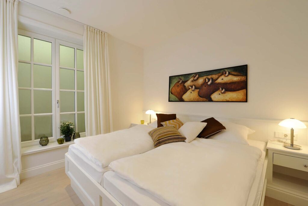 Das großzügige 5-Sterne Ferien Domizil im Kairem Ingiwai 22C erstreckt sich über drei Ebenen und bietet auf 160 m² viel Platz für maximal sieben Personen. Der neu erbaute Hausteil unter Reetdach wurde im Frühjahr 2017 fertiggestellt und liegt ruhig am Rande von Keitum. Das Haus ist im modernen Landhausstil eingerichtet und um einige harmonisch ausgewählte antike...Weiterlesen Möbelstücke ergänzt. Der Esstisch mit einer großzügigen Sitzecke lädt zu Spieleabenden und gemütlichem Abendbrot mit der ganzen Familie ein. An kühleren Tagen spendet der Gaskamin eine wohlige Wärme. Helle und freundliche Farbtöne gepaart mit ausgewählter Kunst verbreiteten friesischen Charme. Die idyllisch gelegene Ost-Terrasse lädt zum Verweilen und Entspannen ein. Der Blick schweift über die weiten und ruhigen Salzwiesen zwischen Keitum und Morsum. Wärme schenkt die Sauna im Souterrain und belebt nach kalten Wattspaziergängen.Weniger lesen